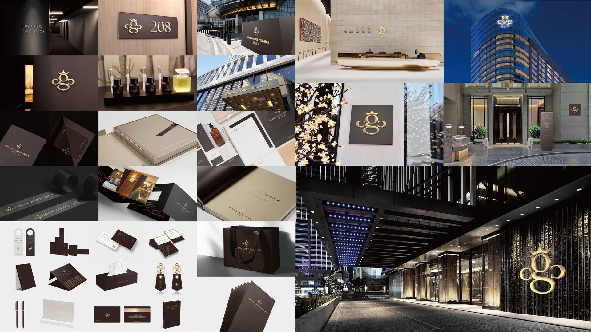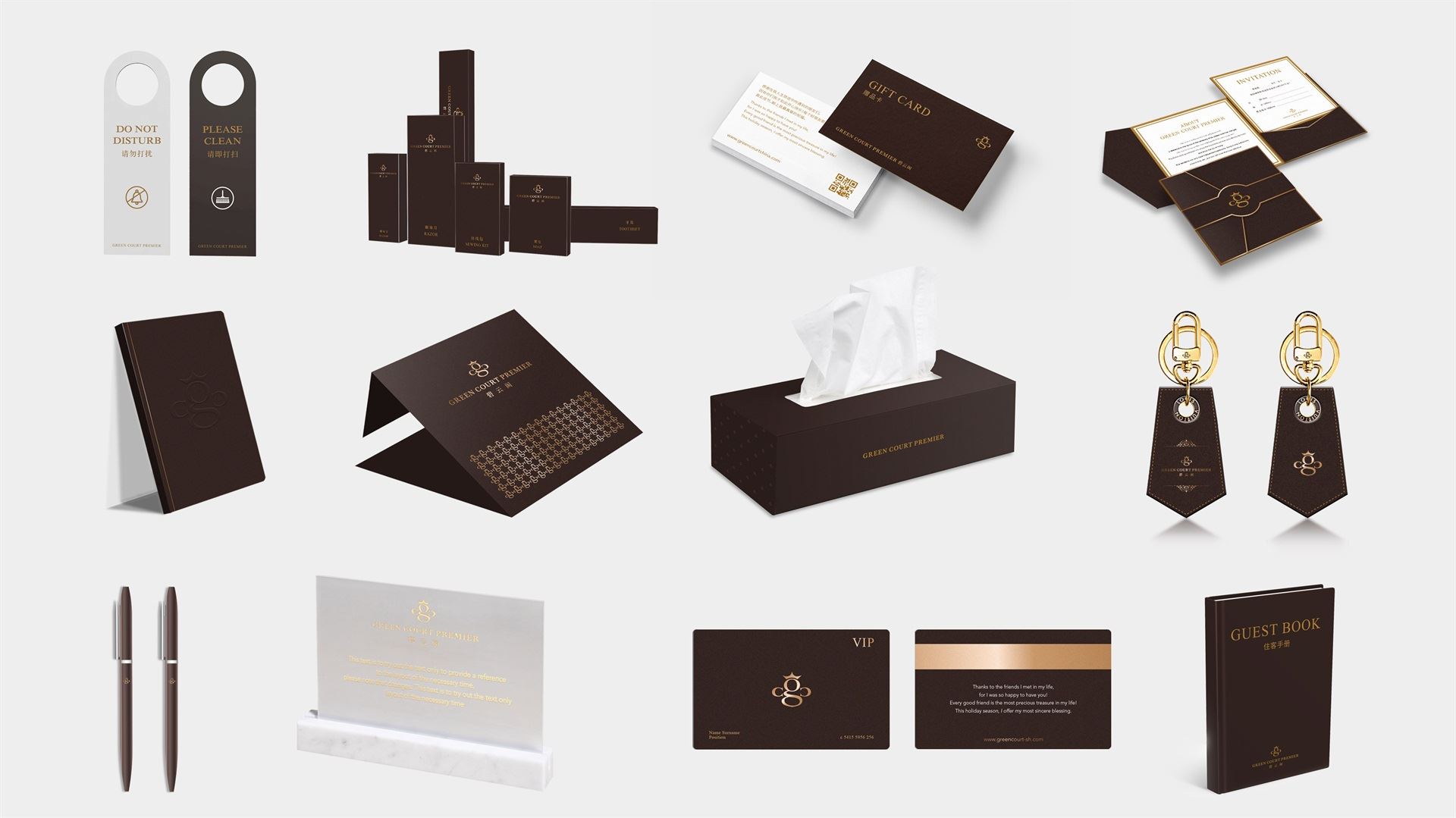 標志圖形通過提煉英文品牌名首字母 “G”、“C”的品牌基因,構成奢華蜜蜂的符號,象征碧云閣給予客戶無微不至的服務和奉獻精神。同時寓意碧云閣內部員工的勤勞素養及親和形象。蜜蜂代表勤勞,服務;占位蜜蜂,即占位酒店服務。