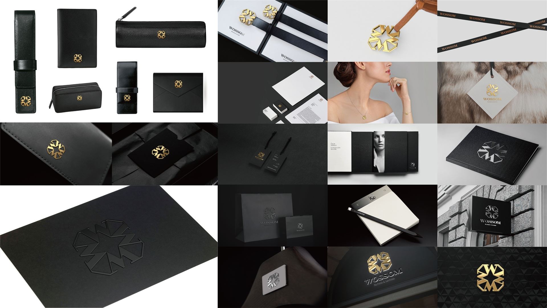 鳶尾是法國國花,象征自由與光明,梵高也曾以它入畫,標志的設計將鳶尾造型抽象處理為中間負形,使其融入法國元素。提取WOSSOM中的“W”和“M”巧妙連接,精致細節的處理凸顯標志穩重時尚的氣質,鉆石切面般的閃耀契合品牌面向高端奢侈品的屬性。