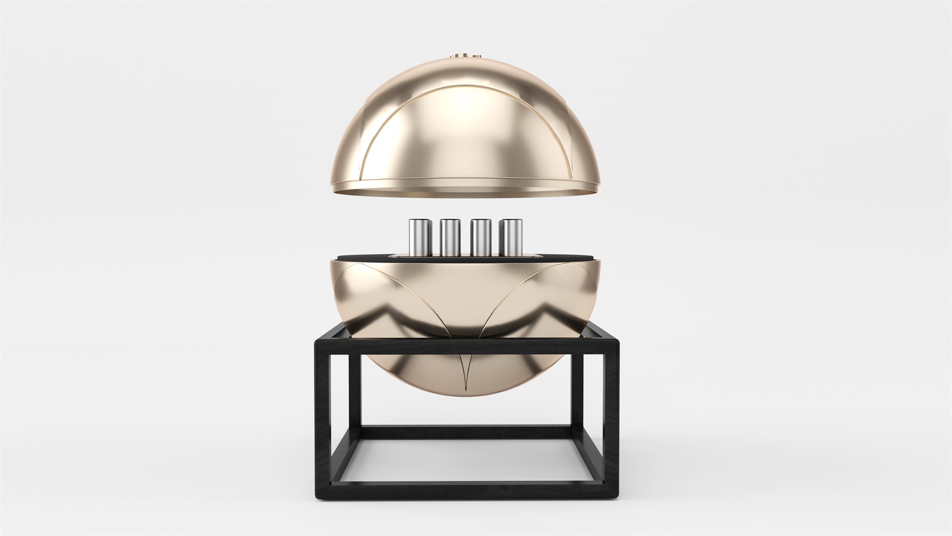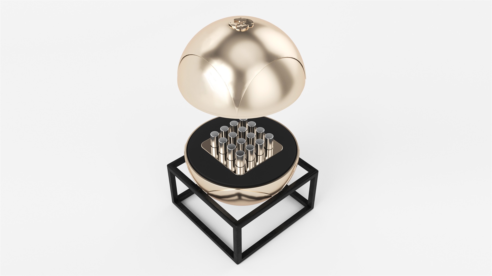 科養生活的蟲草包裝也使用了銀杏葉作為創意主題,包裝整體為球形,圓潤親和,精致特別,并為它特別設計了木框架底座,便于穩定,提升包裝整體儀式感的同時,也有天圓地方,順應自然的寓意。在球形側面四片微凹裝飾的銀杏葉圖樣相互連接,圍住球體,使得包裝在呼應標志上的銀杏葉的同時,再次強調和突出了包裝高端保健的屬性,簡潔大氣。包裝從球體中間打開,內部使用帶圓角的方形為底襯,呼應包裝底座,蟲草使用金屬管封存,科技現代。