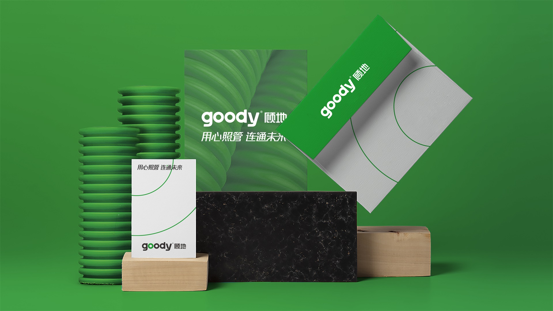 標志圍繞顧地的英文名稱Goody做了精雕細琢的藝術創作,標志的字體形態、間距、顏色、角度等每個細節的設計都與顧地企業的精益求精、品質第一、以及國際化理念相吻合。
