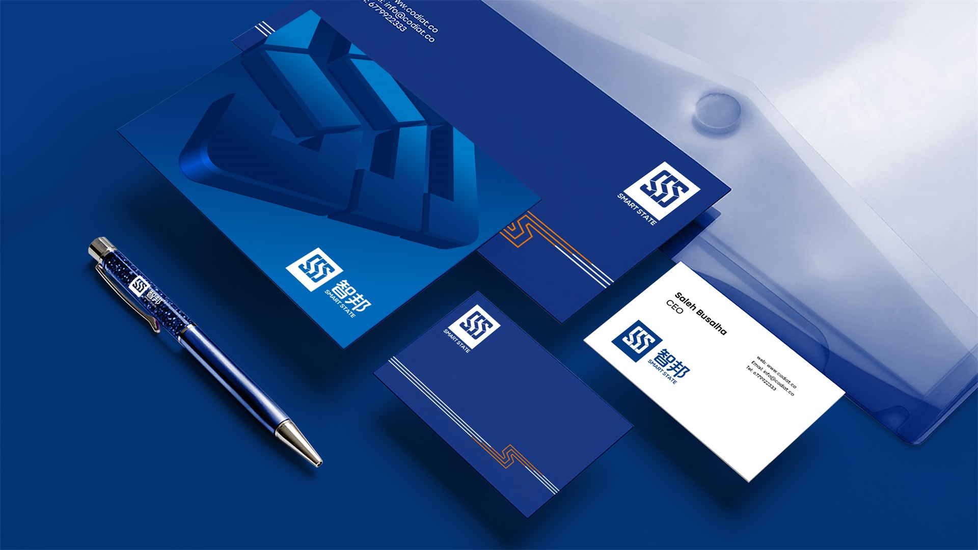 標(biāo)志以SSS作為標(biāo)志創(chuàng)意主體,第一個S代表Shanghai SJTU,即上海交大;第二個S代表Smart,即智能、智慧;第三個S代表State,即邦,平臺;S的設(shè)計(jì)中巧妙的融合了智能機(jī)械手臂造型,三個S各具特點(diǎn),同時又緊密結(jié)合,相輔相成,既展現(xiàn)柔性化生產(chǎn)線的行業(yè)屬性,又寓意企業(yè)團(tuán)結(jié)協(xié)作的文化。此處通過細(xì)節(jié)處理,巧妙構(gòu)成正方形,在圖形中呈現(xiàn)出向上階梯,表達(dá)出品牌積極向上,不斷進(jìn)取的態(tài)度。三個SSS簡潔明了,寓意深刻,識別力強(qiáng),且朗朗上口。